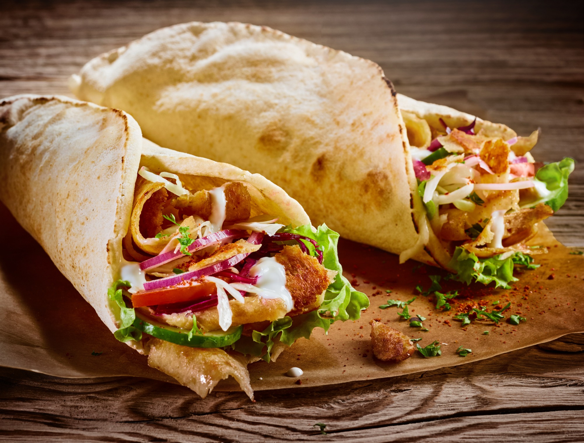 Tortilla podgrzana wodpowiedniej temperaturze z dodatkiem wybranego mięska ze świeżymi warzywami lub frytkami ,w epickich sosach , posypana cebulka prażona.